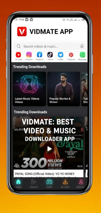 Vidmate supports downloading videos from popular platforms like Facebook , Tiktok , Youtube ,Dailymotion , Twitter, Vimeo and many more. It covers both trending and lesser-known sites , giving you a huge range of sources.
